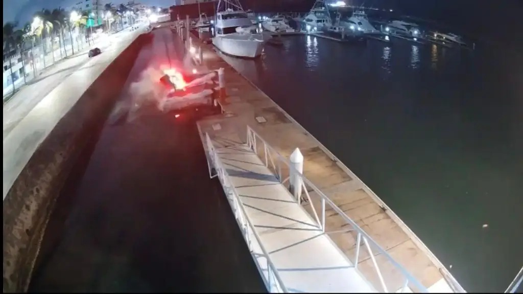 Un insólito y alarmante accidente fue captado en video esta madrugada de hoy en el canal de la marina Veramar, cuando una camioneta perdió el control, se salió de la rampa y terminó cayendo al mar, impactando varias lanchas que se encontraban ancladas en la orilla.